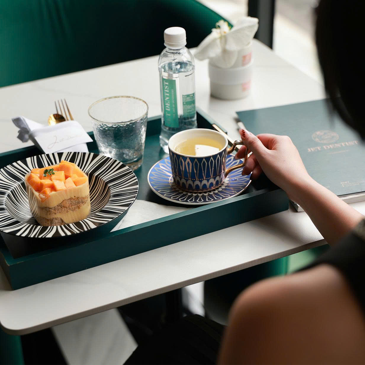 Sự chu đáo ấy hiện diện trong những chi tiết nhỏ: một tách trà ấm dịu, một đĩa bánh ngọt nhẹ nhàng, một lời hỏi han đúng lúc. Tất cả được chuẩn bị để bạn có thể tạm gác lại những bộn bề thường nhật, thả lỏng tâm trí và sẵn sàng cho hành trình chăm sóc nụ cười của riêng mình.