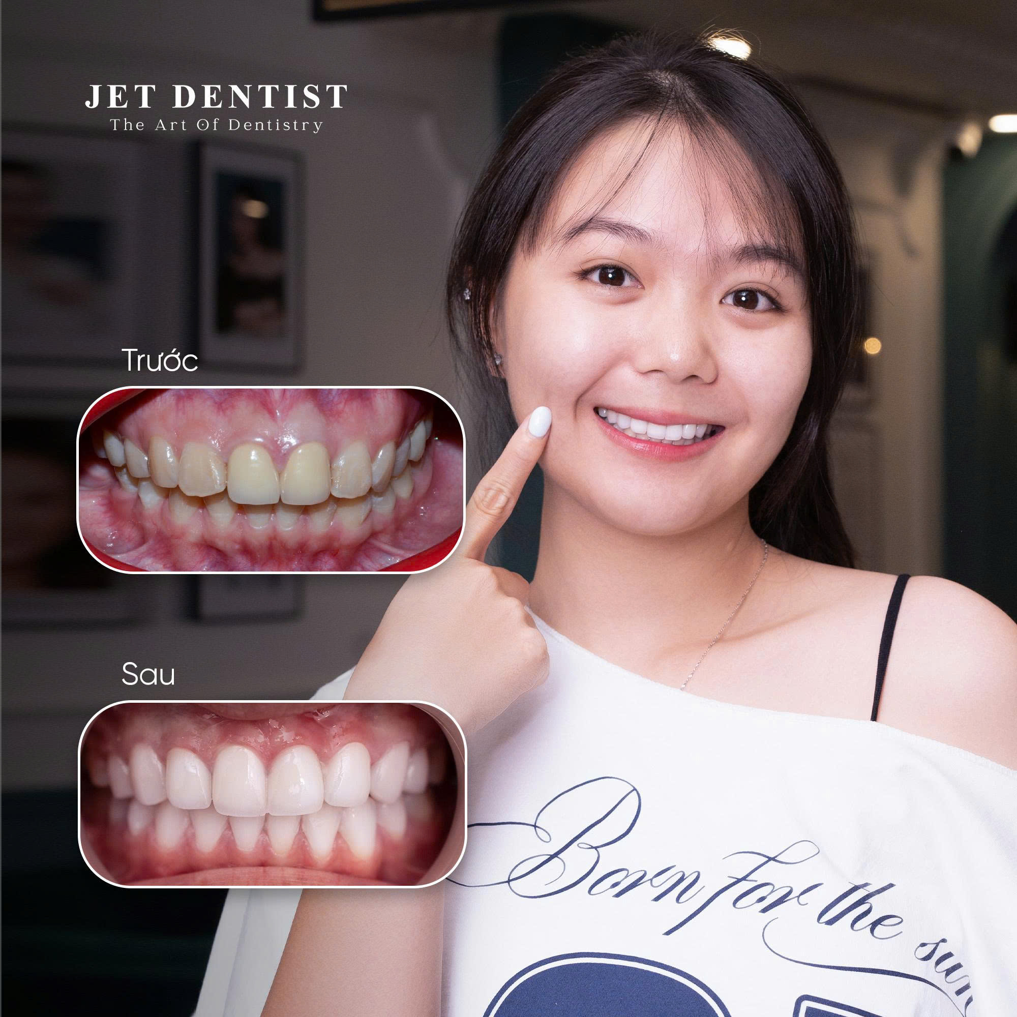 Không chỉ mang đến kết quả thẩm mỹ, Jet Dentist còn chú trọng đến sự hài hòa tổng thể của khuôn mặt để mỗi nụ cười sau niềng đều thật tự nhiên, cân đối và thể hiện đúng cá tính riêng của từng người.