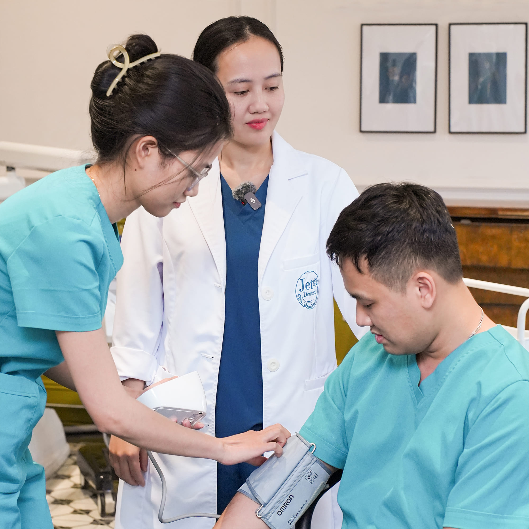 An toàn chuẩn y khoa luôn là giá trị cốt lõi tại Jet Dentist. Vì vậy, bên cạnh việc cập nhật trang thiết bị hiện đại, đội ngũ bác sĩ Jet không ngừng rèn luyện kỹ năng và củng cố phản xạ chuyên môn trong mọi tình huống, kể cả các trường hợp rất hy hữu như phản vệ hay ngộ độc thuốc tê.