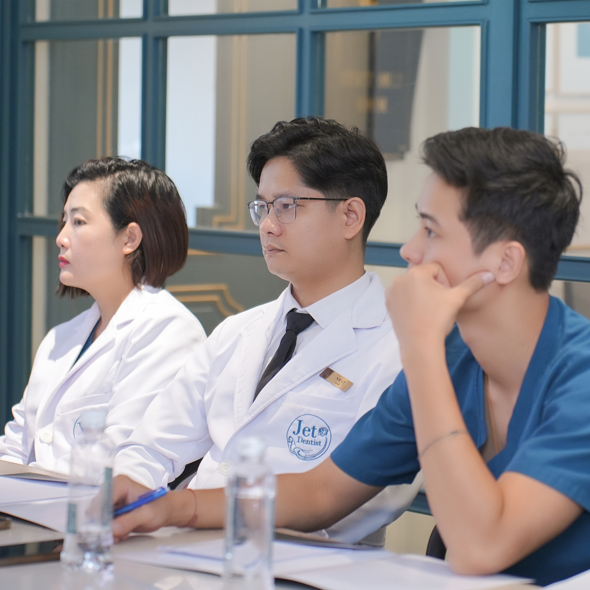 Mỗi buổi trao đổi chuyên môn định kỳ tại Jet Dentist đều giúp đội ngũ bác sĩ nâng cao phản xạ, chuẩn hóa quy trình và đảm bảo mọi ca điều trị đều an toàn tuyệt đối. Đây chính là nền tảng để khách hàng hoàn toàn yên tâm khi trải nghiệm dịch vụ nha khoa cao cấp, chuyên nghiệp và tận tâm.
