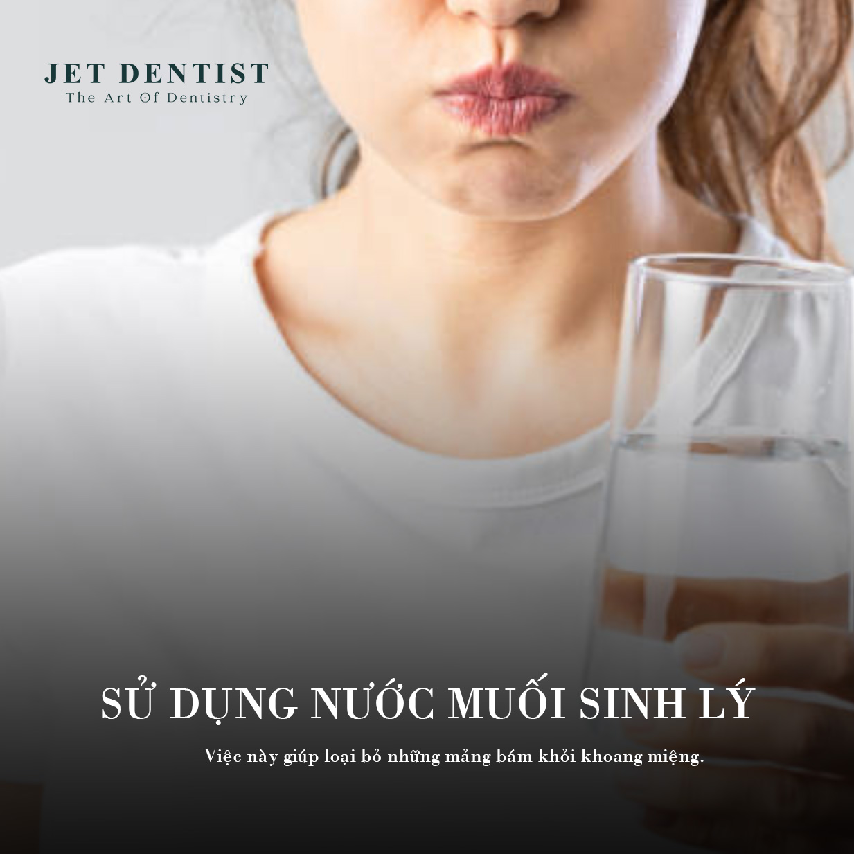 Dùng nước muối sinh lý hoặc nước súc miệng chuyên dụng