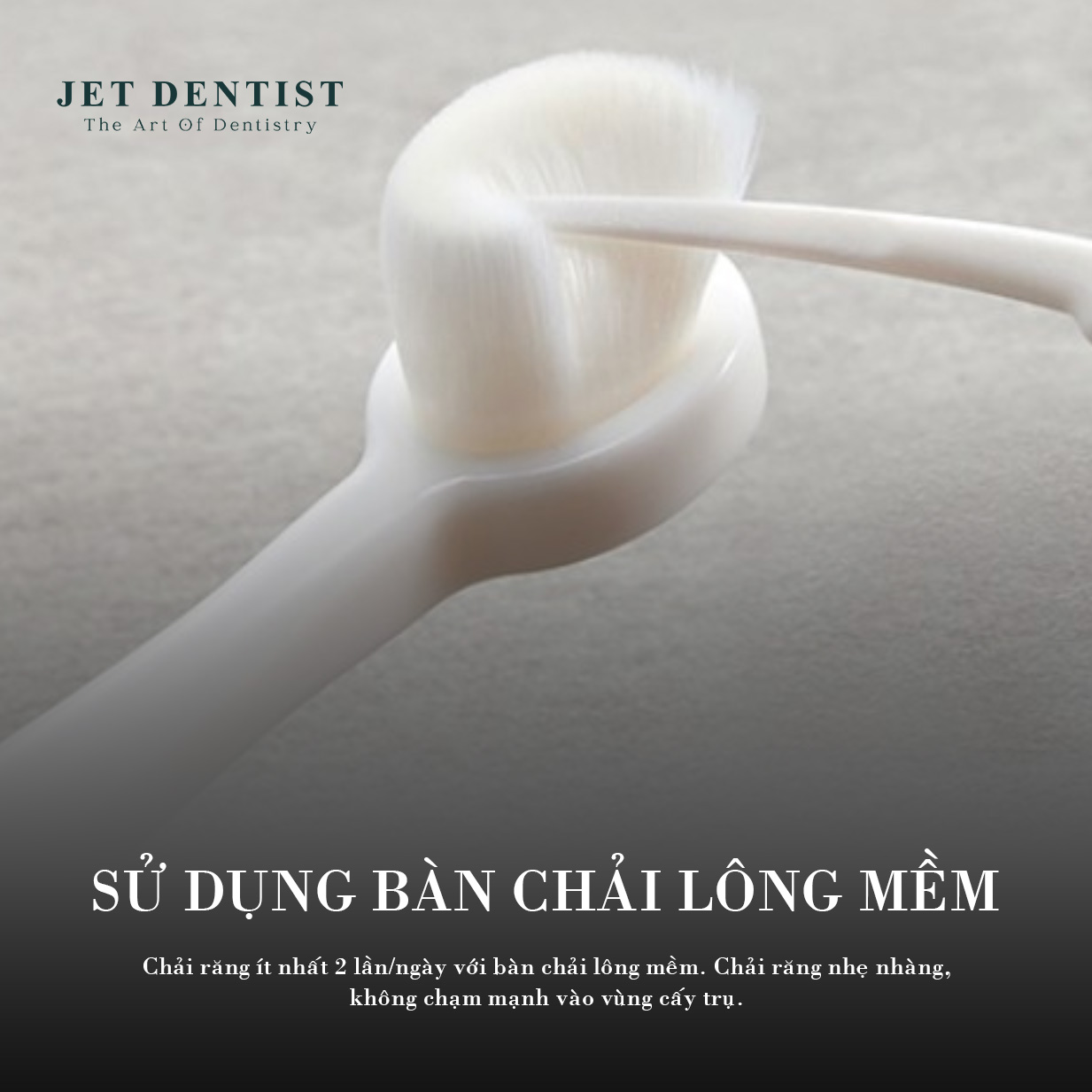 - Sử dụng bàn chải lông mềm, chải nhẹ nhàng để không ảnh hưởng đến trụ Implant.